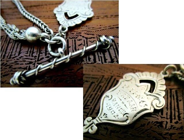 英国純銀製、懐中時計用アンティークチェーン&フォブのご紹介です。