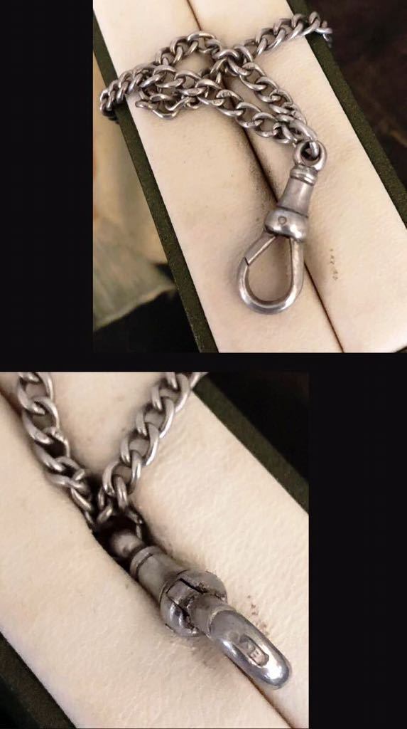 英国アンティーク シルバー マフ チェーン/ガード/ウォッチ ロングチェーン ネックレス 59cm 純銀23.4g 懐中時計 ビクトリア期1899年