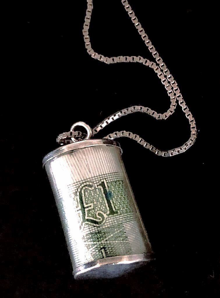 英国ビンテージ 1ポンド 紙幣 シルバー チャーム /フォブ ブレスレット /ペンダント 925チェーン 純銀4.9g/45cm