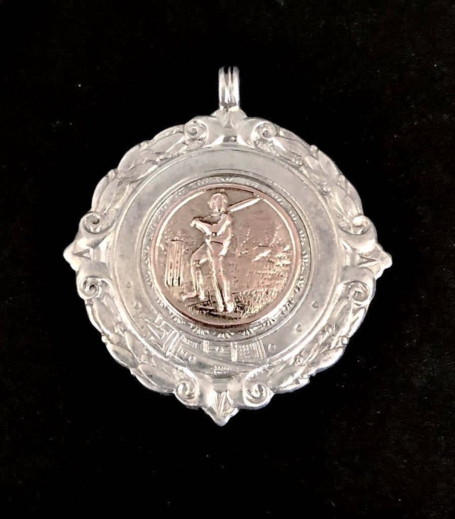 英国アンティーク/ビンテージ クリケット ゴールド&シルバー フォブ/ペンダント 懐中時計 チェーン 純銀10.8g チェスター ジョージ5世1934年 CU社製/全刻印 シルバーホールマーク ウオッチチェーン アルバートチェーン コレクターズ アンティークコレクション Britishmade