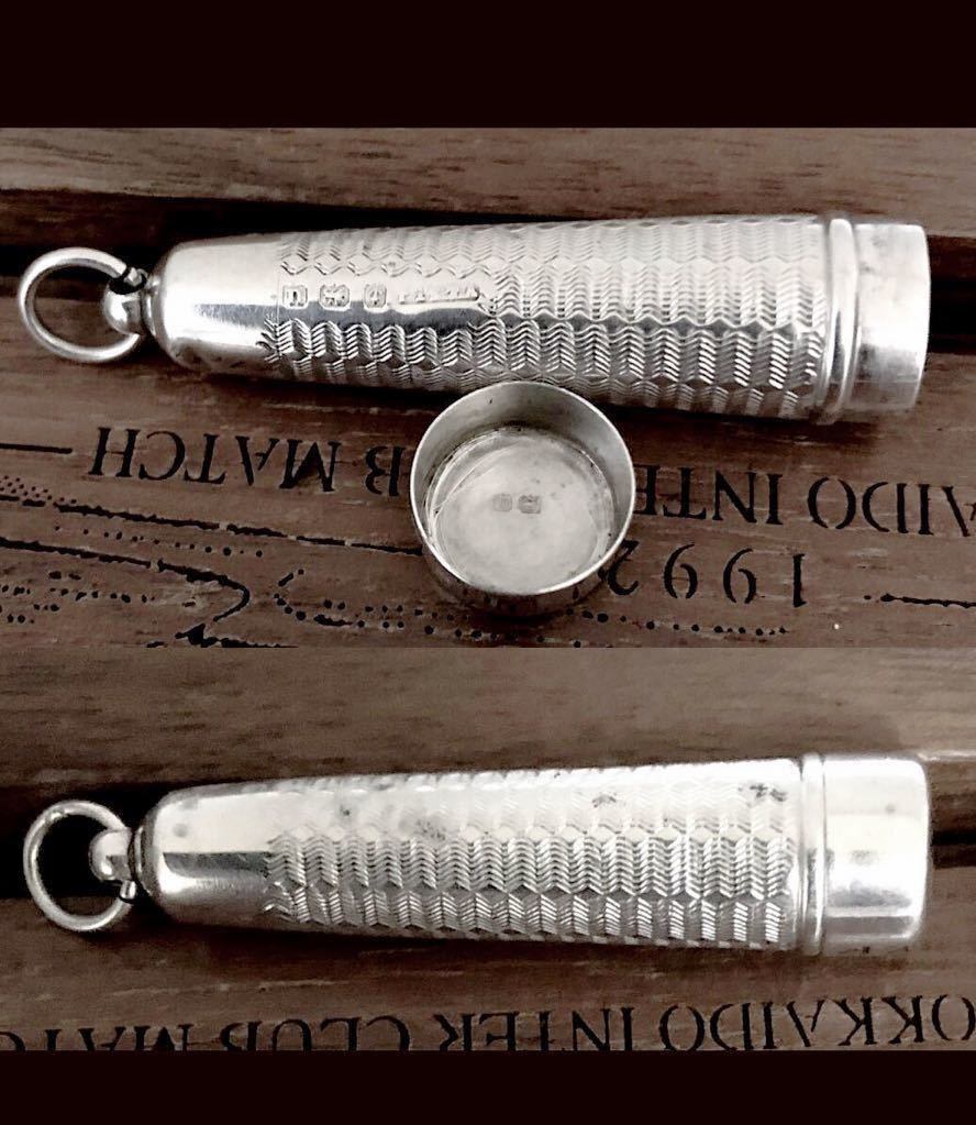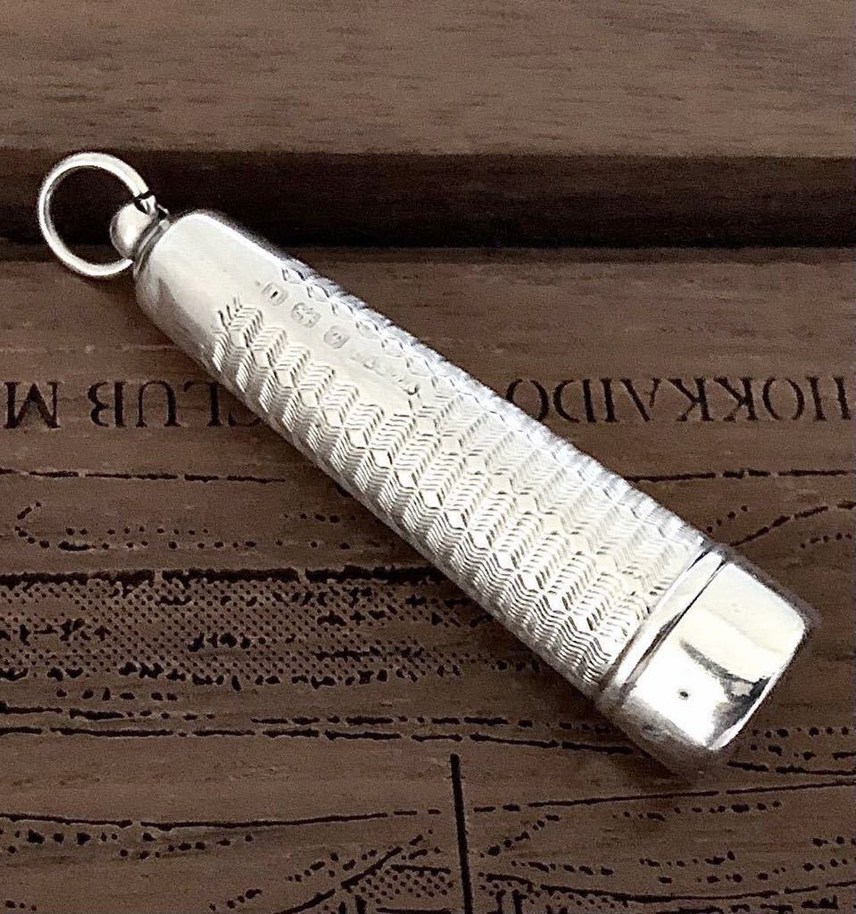 英国アンティーク ニードルケース 針入れ 裁縫道具 シャルロット シルバー 懐中時計チェーン フォブ 純銀4g ART-DECO ジョージ5世 1919年 V&STJ社製 全刻印 英国雑貨 Britishmade コレクターズアイテム