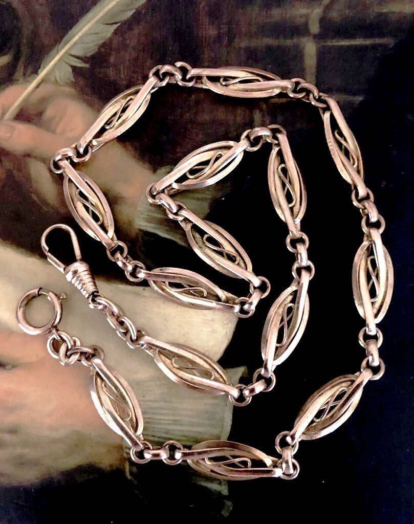 英国アンティーク R.Gold/ゴールド 懐中時計 チェーン/ネックレス 46cm/20.3g エドワード期 1900年初期 SP社製 ウオッチアンティ/ガードチェーン アンティークファッション