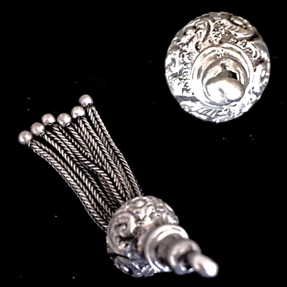 英国アンティーク アルバティーナ タッセル フォブ 懐中時計チェーン シルバー 純銀4.1g ビクトリア期 1890年代 アンティークファッション ビクトリアンファッション Britishmade