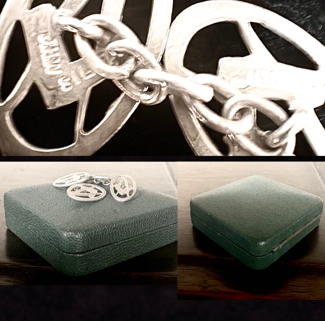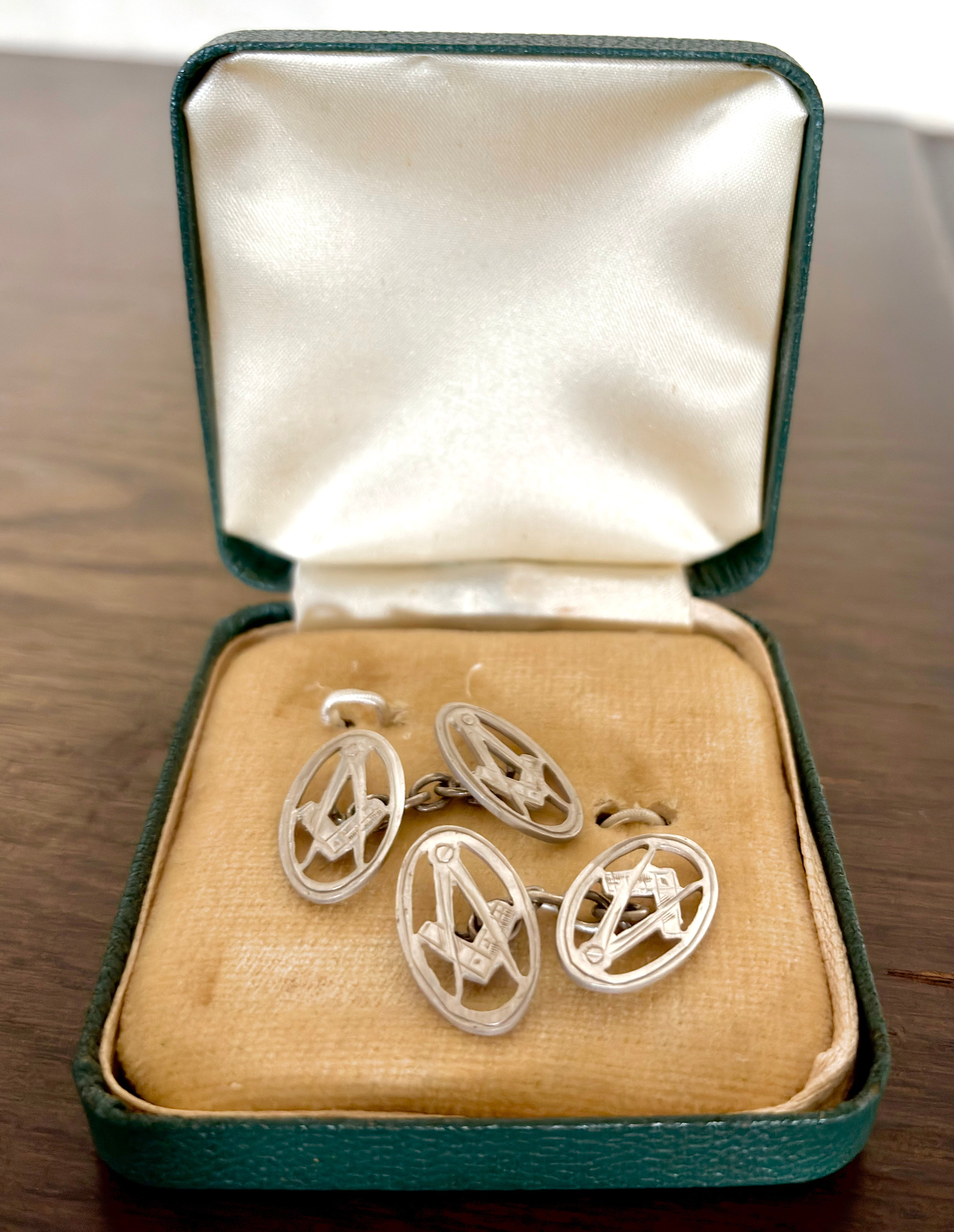 英国ビンテージ マソニック/フリーメイソン スターリングシルバー925 カフス ボタン チェーンメンズ 紳士 純銀4.3g JWH社製John Henry Wynn Birmingham コレクターズ 紳士御用達 ジュエリーボックス付き