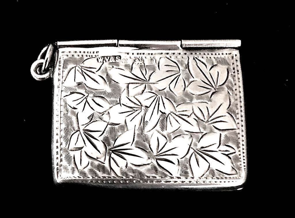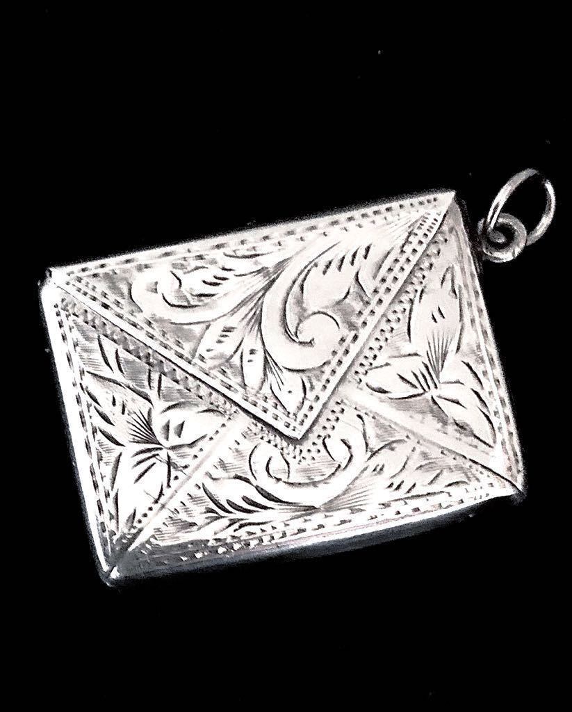 英国アンティーク フォブ チェーン 切手 封筒型 両面装飾 スタンプケース/ホルダー シルバー 純銀5.4g バーミンガム 1910年 WM社製/全刻印 ジョージ5世 コレクターズ 英国雑貨 アンティークコレクション Britishmade