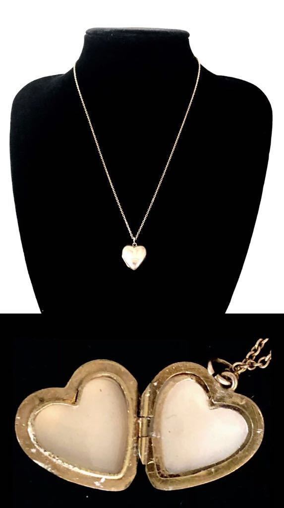 英国アンティーク 14CT R.Gold ハート型 ロケット ネックレス チェーン 44cm/3.8g K&L社製 ロールドゴールド イエローゴールド アンティークゴールド