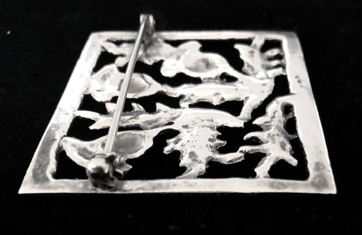 英国アンティーク/ビンテージ シスル/アザミ 大型 長方形フレーム ブローチ ケルト スターリングシルバー純銀17.8g スコティッシュジュエリー ケルティックファッション