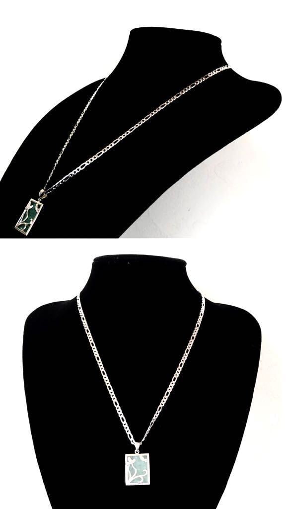 英国アンティーク/ビンテージ ヒスイ/翡翠 ペンダント チェーン/ネックレス スターリングシルバー925 純銀 11.8g/47cm ART DECO 1930年代頃
