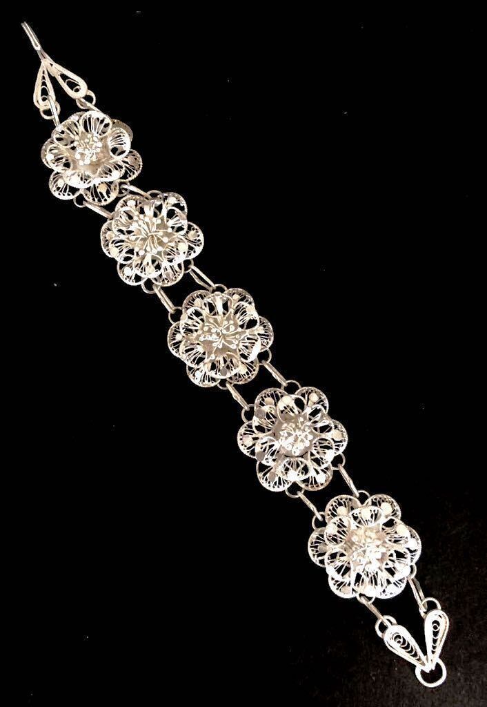 欧州アンティーク フィリグリーパネル ブレスレット 花柄デザイン シルバー800 純銀 14.2g/2.1cm ART DECO 1935年頃 アンティークファッション
