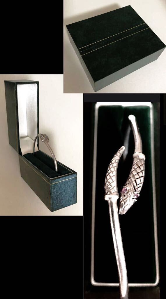 英国ビンテージ スネーク/ヘビ/蛇 腕輪 バングル ブレスレット シルバー純銀11.5g 20cm バーミンガム1987年 G&G社製 箱付 ジュエリーボックス Britishmade