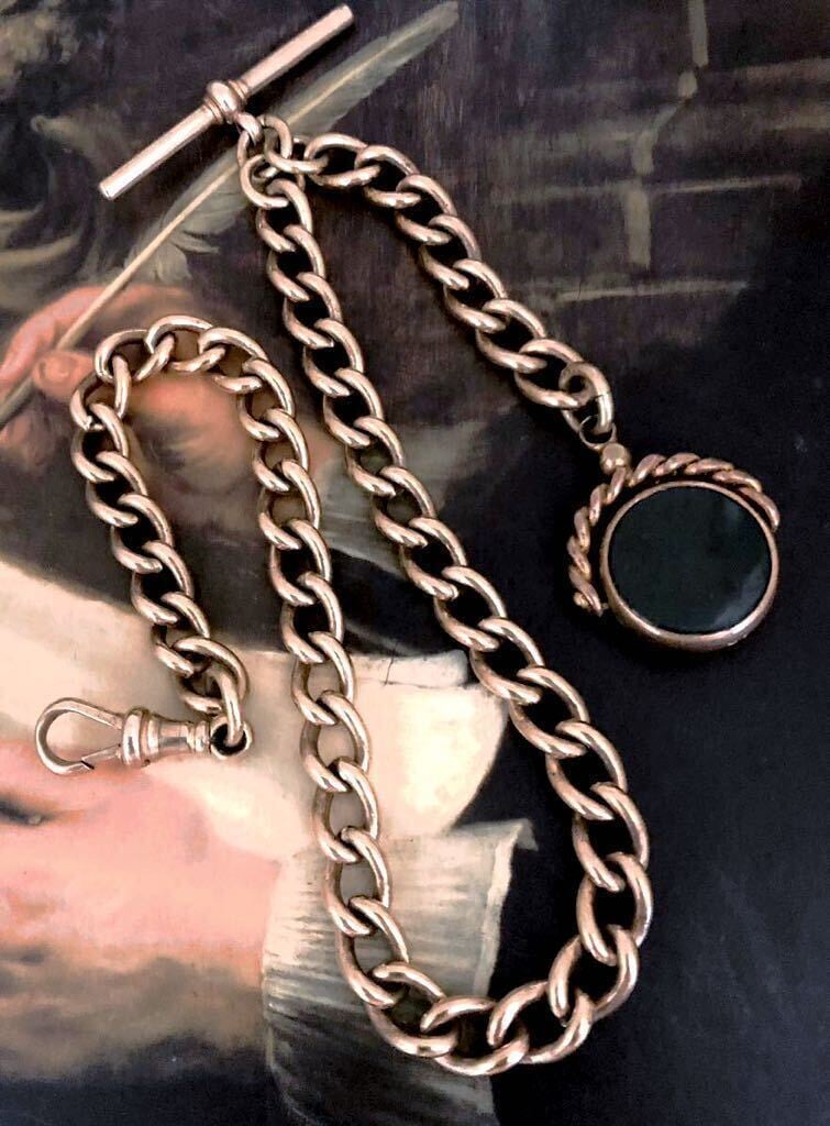 英国アンティーク R.GOLD 2色回転石付シールフォブ イエローゴールド 懐中時計/アルバートチェーン 35.7g ビクトリア期1890年頃 ウオッチ/ガードチェーン アンティークゴールド ロールドゴールド T+H/Thomas Hopwood of Birmingham | 英国アンティークマーケット アンカー