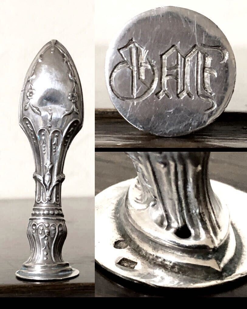 フランス アンティーク デスクシール シーリングワックス/スタンプ カシェ 封蝋 アールヌーヴォー 1890年頃 シルバー 純銀 刻印 フランス雑貨 ART-NOUVEAU ステーショナリー アンテークディスプレイ アンティークのある生活 アンティークコレクション アンティーク雑貨 | 英国アンティークマーケット アンカー