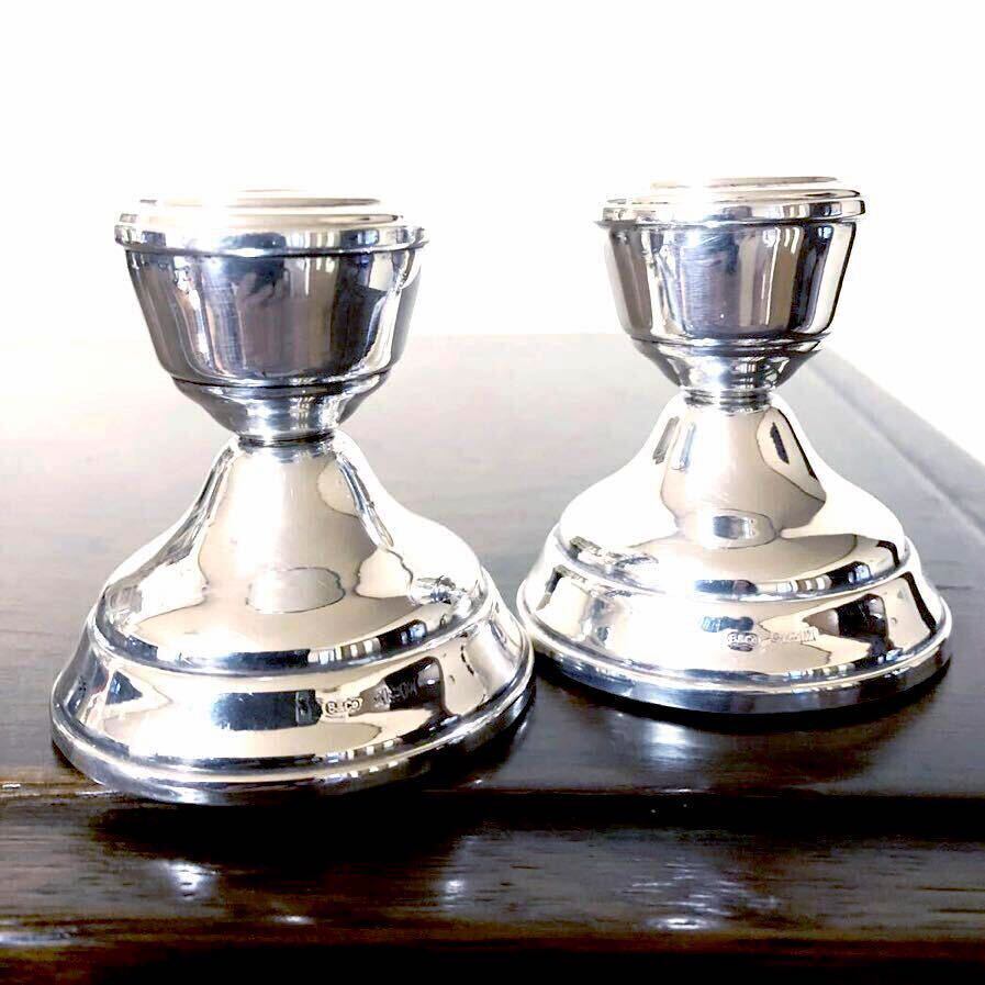 英国ビンテージ キャンドルスティツク スタンド ホルダー 蝋燭 シルバー純銀 2点ペア バーミンガム1970年 B&C0社製 英国雑貨 英国スタイル Britishmade