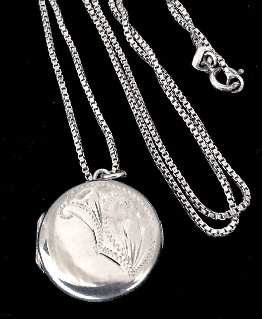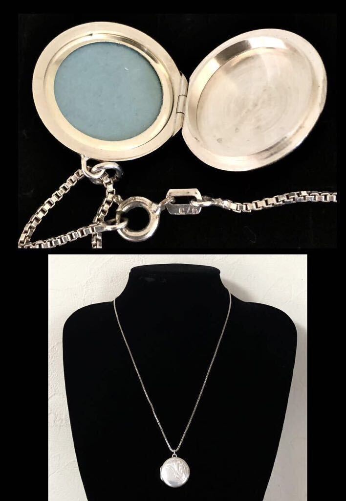 英国アンティーク/ビンテージ ロケット ペンダント チェーン 花模様 シルバー純銀8.2g 46cm バーミンガム 1975年 JAM社製/全刻印 シルバーホールマーク ビンテージファッション 英国スタイル Britishmade