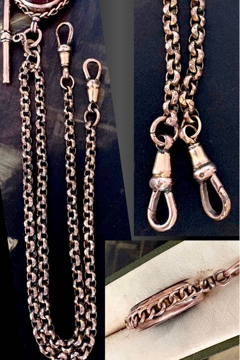 英国アンティーク R.GOLD 2色石付シールフォブ ローズゴールド 懐中時計/ダブルチェーン スライダー式 20.6g ビクトリア期1890年頃 ウオッチ/ガードチェーン アンティークゴールド ロールドゴールド アンティーク・ジュエリー