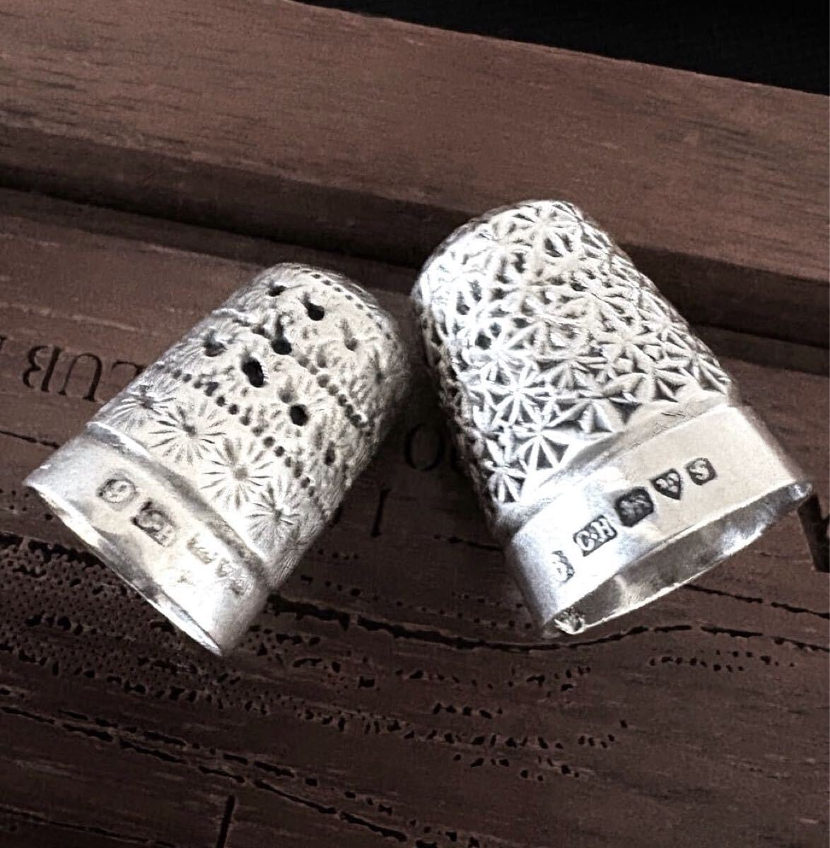 英国アンティーク シンブル指ぬき 2点 裁縫道具 シルバー純銀9.8g ソーイング ジョージ5世 チェスター1925-34年HC&S社製/Charles Horner 生活小道具 英国雑貨 #1