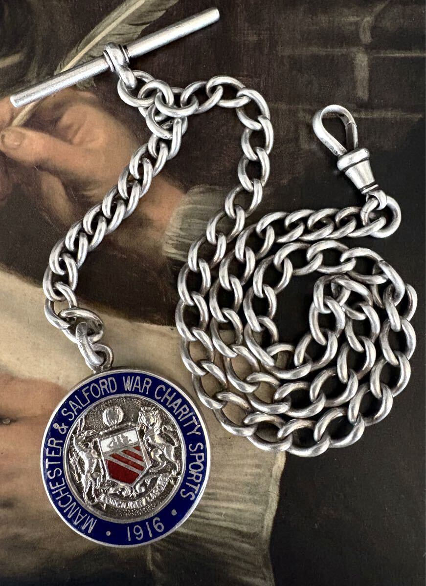 英国アンティーク イギリス紋章 エナメル フォブ シングルロング 懐中時計/アルバートチェーン 純銀46g ジョージ5世1915年バーミンガム LP&A社製 ガード/ウオッチ コレクターズ Britishmade | 英国アンティークマーケット アンカー