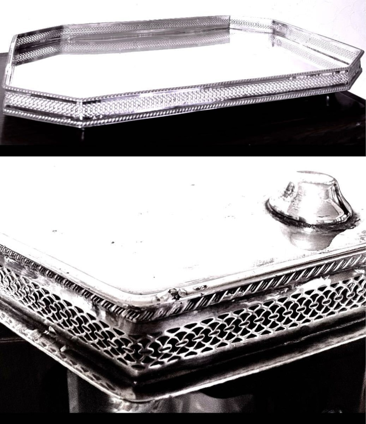 英国アンティーク/ビンテージ 超大型ヘビー級 ギャラリートレイ シルバーp 2036g/46cm お盆/トレンチ アフタヌーンティー BAR用品 カトラリー 英国雑貨